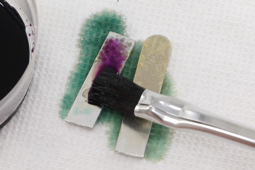 Since the chemical must be in direct contact with the metal to cause a chemical reaction, it goes without saying that any lacquer or coating must be removed before you can use a patina. It’s also just a good idea to wash your metals right before applying patinas. Some metals come with a thin layer of invisible residue from manufacturing that can inhibit patinas, and even pieces that were washed fairly recently can have skin oils from being handled which can cause the metal to resist the patina.